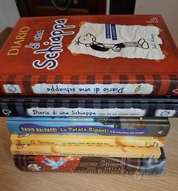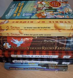 Libri per ragazzi (6 libri al costo di 5 euro l'uno) in perfetto stato di conservazione. Titoli: Un racconto a vignette Jeff Kinney (Diario di una Schiappa) - Non ce la posso fare (Diario di una Schiappa) - Le patate giganti e la macchina del tempo (David Baldacci) - Lo strano caso dei brufoli blu (Geronimo Stilton) - Il libro dei giochi delle vacanze (Geronimo Stilton) - Quinto viaggio nel regno della fantasia (Geronimo Stilton).