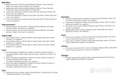 Vendo libri scolastici per ITIS indirizzo Informatica (materie scientifiche e tecniche) in ottime condizioni.
