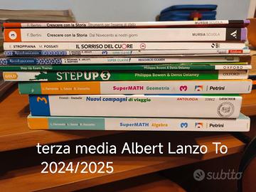 Libri scolastici per le medie ,Istituto F.Albert Lanzo Torinese,usati triennio 2022/2025,presi in blocco di 2 anni oppure tutto il triennio possibile accordarsi sul prezzo,info in privato.