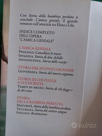 Vendo la serie completa de L'amica geniale; 4 romanzi dell'autrice italiana Elena Ferrante. La serie è composta da L'amica geniale (2011), Storia del nuovo cognome (2012), Storia di chi fugge e di chi resta (2013) e da Storia della bambina perduta (2014). Nuovi, mai sfogliati. Sulla prima pagina c'è il mio nome e la data, come da foto.