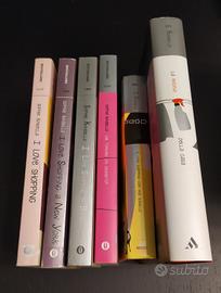 Si vendono n. 6 romanzi di Sophie Kinsella: 4 con copertina morbida e due cin copertina rigida: - I love shopping: "primo romanzo scritto da Madeleine Wickham con lo pseudonimo di Sophie Kinsella, e una delle più celebri opere della letteratura chick lit. È il primo di una serie di romanzi con la stessa protagonista...Becky è una giornalista economica, ma non è assolutamente in grado di tenere sotto controllo le sue finanze; dalla scrivania del prestigioso giornale londinese “Far fortuna risparmiando”, consiglia risparmio e investimenti sicuri ai lettori, ma ha il conto in rosso. Tutto ciò accade per l'irrefrenabile passione, quasi patologica per lo shopping. L'inevitabile conseguenza è quella di ricevere disastrosi estratti conto e di essere letteralmente perseguitata dai manager delle banche che si occupano di recupero crediti." - I love shopping a New York - I love shopping in bianco - Sai tenere un segreto "Emma Corrigan è una ragazza come le altre. Lavora come assistente marketing per un'importante azienda. Durante un viaggio, l'aereo sul quale stava viaggiando rischia di precipitare e, senza rendersene conto, Emma inizia a raccontare tutti i suoi segreti (anche quelli più intimi) all'uomo che le è seduto accanto. Quell'uomo, poi, si rivelerà colui che le paga lo stipendio, Jack, fondatore dell'azienda..." - I love shopping con mia sorella - La regina della casa "Samantha Sweeting, un affermato avvocato di Londra, sta per diventare socio anziano del suo studio legale. Proprio il giorno della sua nomina viene licenziata, per la mancata spedizione di una pratica riguardante un prestito per una società in bancarotta. Samantha fugge, diretta chissà dove: in preda al panico e al mal di testa comincia a camminare e arriva nei pressi di una villa. Suona per chiedere un'aspirina e i padroni di casa la scambiano per la governante mandata da un'agenzia. Samantha accetta il posto, convinta di sapersela cavare.." Costo total per 6 libri: euro 10.00