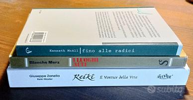 Tre libri su Reiki e guarigioni, nessuna scritta o sottolineatura Reiki, il vortice della vita, di Giuseppe Zanella, ed. Atlantide del 2000 I luoghi alti, di Blanche Merz, ed. Sugarco del 1986 Fino alle radici, di Kenneth McAll, ed. Ancora del 2003