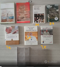 - Bergoglio (papa Francesco) encicliche (cedo entrambe in coppia) “Laudato sii” (1 euro), “Evanagelii gaudium” (1 euro), “Il nuovo papa si racconta” (5 euro)