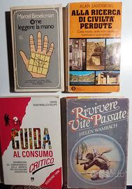 Libri a €2 l’uno: -Alla ricerca di civiltà perdute – Alan Landsburg -La ginnastica per la nostra salute – Dottor J.E. Ruffier -Un volto, due destini – Andrew Neiderman -Rivivere vite passate – Helen Wambach -Come leggere la mano – Marcel Broekman -Guida al consumo critico -The Q book of punk legends (in inglese) -La bionda dagli occhi neri – Benjamin Black (John Banville) -Ritorno alla vita – P.M.H. Atwater -Il manuale di chitarra – Claudia Gallone -Pompei – Robert Harris -Steve Martini – Influenza indebita -Steve Martini – I casi dell’avvocato Paul Madriani -Steve Martini – Chiamata in giudizio