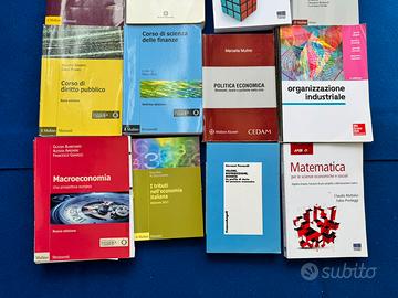 Vendo diversi libri universitari usati per il corso di laurea in Economia, in buone/ottime condizioni, senza sottolineature o con evidenziature leggere. Perfetti per studenti di triennale o magistrale in economia, finanza, statistica o scienze sociali