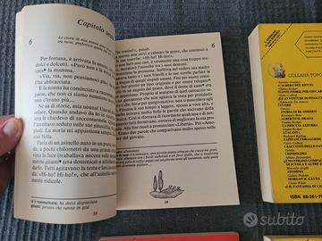 Quattro libri vintage di narrativa per bambini Collana Topo di Biblioteca casa editrice Piccoli, utilizzati ma internamente in ottime condizioni, mentre le copertine sono ingiallite e macchiate dal tempo. I libri risultano stampati edizione 1986-1988. Del set di libri fanno parte: "Un papà pazzesco" di Pierre Louki, "Il giornalino di Gianburrasca" di Vamba, "Tante storie per Giocare" di Gianni Rodari e "Le Avventure di Pinocchio" di Carlo Collodi. Ogni libro contiene schede di guida alla lettura.