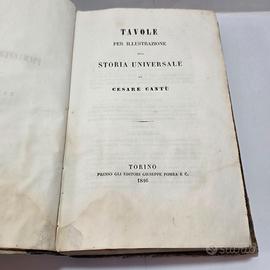 TITOLO: Tavole per illustrazione alla Storia Universale di Cesare Cantù - Torino Presso Gli Editori Giuseppe Pomba e C. 1846. Misure 24.3 x 16 cm. Pagine: 1 f.b. + 40 + 100 tavole. Completo. Coperta in mezza pelle con piatti marmorizzati, titolo e fregi in oro al dorso. Interno in buono stato, gora bassa poco marcata in quasi tutto il libro, più marcata inizialmente. Perdita di carta in basso al dorso superiore. Piatti lievemente incurvati. Alcune delle 100 tavole sono più volte ripiegate. Nel complesso buon esemplare. libri antichi libro antico libri rari libri storici libri da collezione libro da collezione antiquariato libri antiquariato collezionismo librario arte antica cultura antica vendita libri antichi antique books ancient book rare books historical books collectible books antique book sales book antiquities ancient art antiques book collection livres anciens livre ancien livres rares livres historiques livres de collection antiquités livres vente livres anciens art ancien libros antiguos libro antiguo libros raros libros históricos libros de colección antigüedades libros venta libros antiguos arte antiguo alte Bücher altes Buch seltene Bücher historische Bücher Sammlerbücher Buchantiquariat Antike Bücher book books collection art 400 500 600 700 800 900 XVII XVI XV XVIII XIX XX