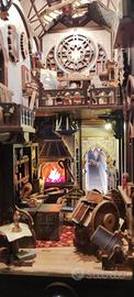 Book nook Leonardo da Vinci costruito con luci interne e sensore di movimento alcune parti sono in movimento
