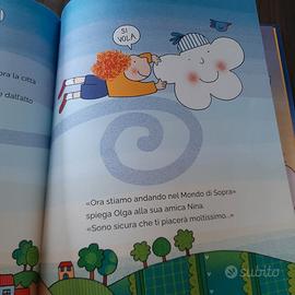 Nel Mondo di Sopra il Sole sta per svegliarsi e la stella Sonia ha preparato il caffè: sta per iniziare una nuova giornata. La nuvola Olga è già pronta e non vede l'ora di scoprire cosa l'attende. Quando scende nel Mondo di Sotto, Olga incontra Nina, una bambina dai capelli rossi e ricci, che rincorre il capello che il vento birbantello le ha portato via. Sarà l'inizio di un'amicizia davvero speciale! Nina abbraccia Olga e il vento le fa volare in alto. Ecco, si parte, comincia l'avventura. Età di lettura: da 3 anni.
