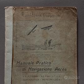 Vendo rarissimo manuale d'epoca "Manuale Pratico di Navigazione Aerea" scritto dal Prof. Attilio Seniga. Il libro è un compendio completo sulle conoscenze tecniche di inizio secolo scorso riguardanti aerostatica, meteorologia e la nascente aviazione. Pubblicato a Milano, è arricchito da numerose illustrazioni tecniche. Oggetto da collezione, ideale per appassionati di cimeli aeronautici, ingegneri o per esposizione in studi professionali. Libro usurato, alcune pagine sono staccate, ma presenti.