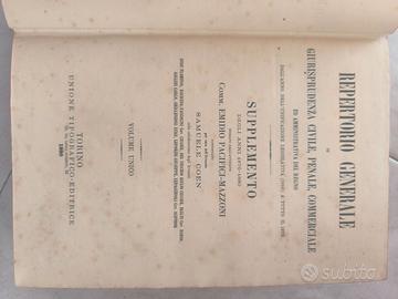 Splendido volume antico di giurisprudenza del 1876, curato dall'Avv. Samuele Coen. Edito dalla storica Unione Tipografico-Editrice (UTET) di Torino, sede di Via Carlo Alberto 33.