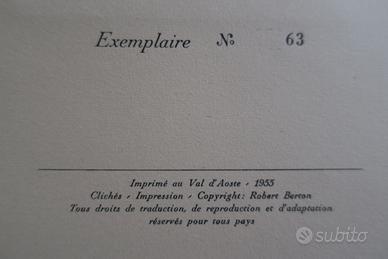 Ed. ED. D'ART DUC ED. AOSTE, 1955 In 4 gr. di pag. 150, su carta pesante, con molti disegni e riproduzioni di costumi a colori applicate. Saggio storico e artistico sulla città di Aosta e la sua valle, con m. ill. a sanguigna n.t. e 20 tavv. a colori applicate su cartoncino f.t. edit. 1/2 tela, dorso rovinato, qualche punto interno solo leggermente da rilegare, pagine ingiallite.
