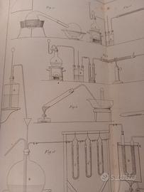 Trattato elementare di chimica inorganica di Piria. Firenze, 1851. Quarta edizione. Salda legatura in mz.pergamena con piatti marmorizzati, titoli e fregi in oro al dorso. Con 11 tavole ripiegate contenenti 78 figure incise da Tito Pandolfini.