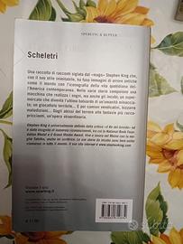- N°. 1 libro autore Stephen King, titolo "scheletri", in buone condizioni; presenta macchie sparse sui tagli superiore, concavo, inferiore e colofone dati dal tempo.