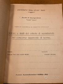 Tesi di laurea Facoltà di giurisprudenza Università degli studi di Bari Anno accademico 1952-1953 Relatore: On.le Prof. Aldo MORO
