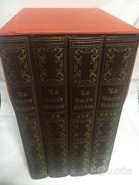 LA SACRA BIBBIA in quattro volumi, ognuno rilegato con copertina rigida in similpelle con scritta dorata , racchiusi in un raccoglitore originale. Introduzione, Traduzione e Note di