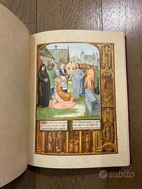 Libro Breviario Grimani in Edizione limitata numerata. Volume rilegato in velluto rosso con in copertina una borchia a sbalzo raffigurante il busto del Cardinale Grimani, contenitore in cartone marmorizzato. Edizione speciale stampata per il 75o anniversario della fondazione del banco di Venezia. Riproduzione tavole a colori. Il codice noto come "Breviario Grimani" è indiscutibilmente uno dei massimi, se non il massimo capolavoro dell'arte della miniatura fiamminga del Rinascimento. Di committenza incerta, posseduto da Margherita d'Austria, venne acquistato intorno al 1520, per ben 500 ducati d'oro, dal Cardinale Domenico Grimani, che, lasciandolo in eredità alla Serenissima Repubblica di Venezia, vincolava il lascito alla condizione che il codice venisse mostrato solo a persone di straordinario riguardo e in circostanze eccezionali. Volume in ottime condizioni.