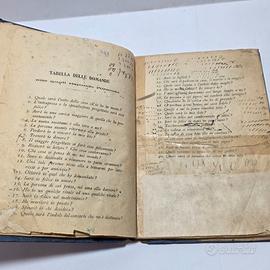 TITOLO: L'oracolo delle Damigelle L'avvenire - Società Editrice "La Milano". Misure: 18 x 12.6 x 0.9 cm Ca. Pagine: 1 f.b. + 125 (3) + 1 f.b. Coperta in mezza tela con piatti in carta blu. Interno con frontespizio e seconda pagina parzialmente scollate sulla sinistra con perdite di carta e scritte. Da Pagina 5 a Pagina 10 restauri con nastro adesivo e carta. Il resto è in buono stato di conservazione con lieve brunitura coeva e piccoli strappi agli angoli o occasionali segni di scrittura con calcoli e scritte a matita o a penna nel testo. NOTE: testo divinatorio basato su calcoli numerici e tabelle, presente anche la sibilla cumana libri antichi libro antico libri rari libri storici libri da collezione libro da collezione antiquariato libri antiquariato collezionismo librario arte antica cultura antica vendita libri antichi antique books ancient book rare books historical books collectible books antique book sales book antiquities ancient art antiques book collection livres anciens livre ancien livres rares livres historiques livres de collection antiquités livres vente livres anciens art ancien libros antiguos libro antiguo libros raros libros históricos libros de colección antigüedades libros venta libros antiguos arte antiguo alte Bücher altes Buch seltene Bücher historische Bücher Sammlerbücher Buchantiquariat Antike Bücher book books collection art 400 500 600 700 800 900 XVII XVI XV XVIII XIX XX