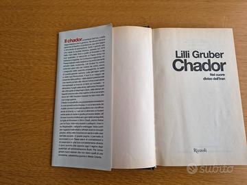 Libro copertina rigida scritto da Lilly Gruber ed. Rizzoli del 2005 il titolo Chador è il simbolo dell'Iran e della legge Islamica che lo governa. Sotto il grande velo che copre la società Iraniana , passata nel 1979 dalle mani dello Scià a quelle di Khomeini e dei suoi Ayatollah, si nasconde un Paese diviso tra bellezza e tragedia, tra ricchezza e ingiustizia.