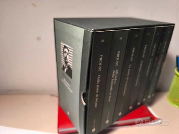 Bellissimo cofanetto completo de "Alla ricerca del tempo perduto" di Marcel Proust. Si tratta dell'ambita edizione da collezione degli anni '90 (prezzo originale riportato in copertina: L. 98.000), ormai fuori catalogo in questa elegantissima veste grafica scura della collana Oscar Grandi Classici.