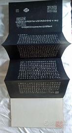 Splendido libro in giapponese classico, con stampa di altissima qualità grafica, inclusa la carta di grosso spessore. Il libro tradizionale, ha una copertina morbida in tessuto impunturato artigianale. Il libro, che presenta in prima pagina il timbro dell’editore, in rosso, si sfoglia a soffietto, come nella tradizione giapponese. L’oggetto, perfettamente conservato, è stato acquistato in Giappone negli anni 1970. Si tratta di un oggetto da collezionismo.