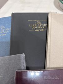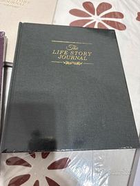 è un diario della memoria, marca Lanpn, progettato per registrare la storia della vita di una persona. Aiuta a documentare ricordi, storie familiari e tappe fondamentali. Include domande guidate e prompt per stimolare il ricordo di dettagli specifici. È un regalo ideale o uno strumento personale per creare un'eredità significativa da passare alle future generazioni. I colori disponibili sono: Blue Grigio, Nero, Beige, Viola, Verde. Il prezzo è di 10,00 euro cadauno.