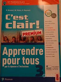 Libro di francese per la terza classe della scuola media "C'est Clair" Volume 3 con quattro annessi (totale 5 volumi). Qualche esercizio è svolto A MATITA