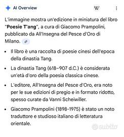 Libro di poesie cinesi, come meglio identificato nel commento di google realizzato con intelligenza artificiale, edizione in miniatura del libro “Poesie Tang” .