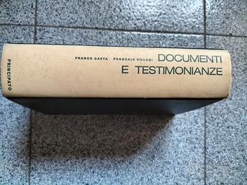DOCUMENTI E TESTIMONIANZE - Antologia di documenti storici di Franco Gaeta e Pasquale Villani, Principato Editore, 1971, pp. 1095, cm 15x21,5. Il libro è nel complesso in buone condizioni, a parte dei piccoli segni di usura sulla copertina e dei leggeri aloni sulla prima di copertina e sull'ultima pagina interna bianca.