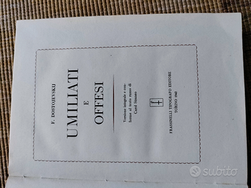 Libro di Fëdor Dostoevskij - Umiliati e Offesi - Prima Edizione - Frassinelli Tipografo Editore - esemplare fresco e ben conservato, pagine a parvenza fresco di stampa. Raro e ben conservato, versione integrale e conforme al testo Russo di Carol Straneo copertina cartonata con disegno del piemontese Adriano Sicbaldi
