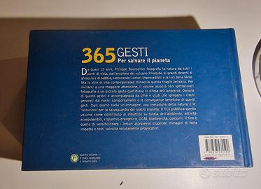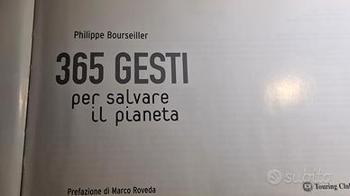 libro "365 Gesti per salvare il pianeta", una raccolta fotografica dedicata alla natura e alla sostenibilità ambientale. Fotografie naturalistiche diPhilippe Bourseiller. L'edizione è curata dalTouring, si tratta di un volume che solitamente include 365 fotografie a colori, una per ogni giorno dell'anno.