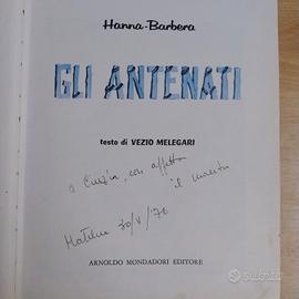 Volume vintage Gli Antenati (The Flintstones) edito da Arnoldo Mondadori Editore, IV edizione del marzo 1976, con testi di Vezio Melegari basati sui personaggi originali di Hanna-Barbera. Il libro fa parte della collana legata a Carosello come indicato graficamente sul dorso a colori, copertina rigida. In buone condizioni per un libro di 50 anni, rilegatura solida e i colori della copertina e disegni interni sono ancora vivaci, presenta una dedica firmata a penna nella prima pagina, piccola correzione con bianchetto sul bordo superiore nella pagina del sommario rimozione di un none precedente, qualche segno di penna in un angolo di una pagina.