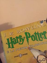 libro di J. K Rowling in copertina rigida. titolo "Harry Potter e la pietra filosofale* Sovracoperta leggermente rovinata sul bordo.