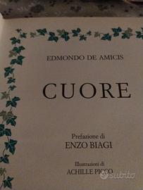 libro Cuore vintage editore Edmondo De Amicis, prefazione di Enzo Biagi,anno 93.rilegatura in pelle rossa con illustrazioni all' interno.