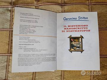 *** Libro illustrato "GERONIMO STILTON - IL MISTERIOSO MANOSCRITTO DI NOSTRATOPUS" *** - Condizioni Ottime, come nuovo (naturale invecchiamento della carta interna) - Copertina esterna rigida - Numero pagine 116 - Anno di stampa 2005