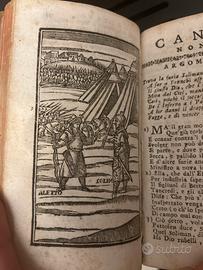 Interessante libro antico del 1777, in piena pergamena coeva, il Goffredo ovvero la Gerusalemme liberata, stampato a Venezia presso Savioli, poema eroico, illustrato con 20 incisioni, una per ogni canto, dimensioni15*9. Presenti scritte in antico alle carte bianche iniziali e finali, condizioni come da foto, per qualsiasi informazione basta chiedere