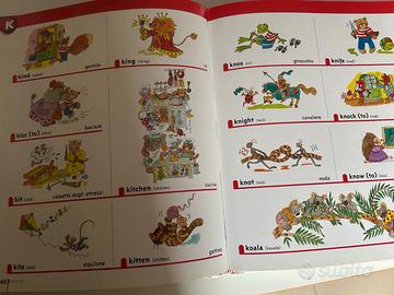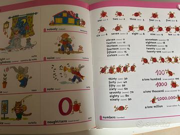 Libro vintage del 2009 illustrato per bambini "1000 parole in inglese - Come si dice in inglese? ". Copertina imbottita, Girasole Editore.