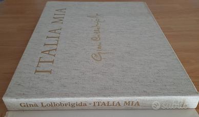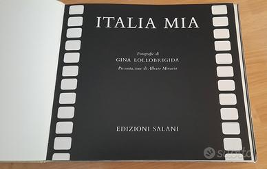Libro fotografico "Italia mia" interamente realizzato dalla leggendaria Gina Lollobrigida, non solo un'icona del cinema, ma qui in veste di talentuosa fotografa, due anni di lavoro, ventimila fotografie di cui circa duecento selezionate, in bianco e nero e a colori, che ritraggono l'anima dell'Italia, dai personaggi famosi alla gente comune. Presentazione di Alberto Moravia, casa editrice Adriano Salani spa Firenze, stampa di pregio curata dalla Stamperia Valdonega di Verona su carta delle Cartiere Italiane Riunite nel 1972 (prima edizione). Il libro è in buone condizioni vintage, la copertina rigida telata interna è ben conservata con titolo e firma in oro, la sovraccoperta originale mostra qualche segno del tempo come pure la rilegatura, pagine pulite. Dimensioni 30x26,5