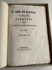 Libro antico "L'ape italiana delle belle arti" - Giornale dedicato ai cultori ed amatori di esse - Anno quarto - Volume quarto - Roma 1838.