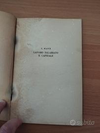 copia vintage del libro"Lavoro salariato e capitale"di Karl Marx, pubblicata dalle Edizioni in Lingue Estere di Mosca nel 1947, rovinato davanti come visibile in foto