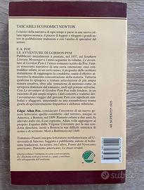 E. Allan Poe - LE AVVENTURE DI GORDON PYM - Tascabili economici Newton - 1993 TITOLO ORIGINALE: The narrative of Arthur Gordon Pym of Nantucket. TRADUZIONE DI: Enzo Giachino. INTRODUZIONE DI: Tommaso Pisanti. CONDIZIONI: Pagine in condizioni piu’ che buone, con ingiallimenti dovuti dal passare del tempo. Copertina con piccoli difetti (come da foto n. 5, 6). DIMENSIONI: Lunghezza: 21 cm Larghezza: 13.5 cm Spessore: 2 cm 258 pagine