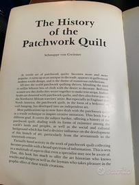 Libro "The history of the patchwork quilt" in lingua inglese. Il libro presenta sul fondo laterale delle etichette adesive.