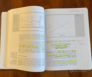 Libro “Macroeconomia” - 12 ed. di R. Dornbusch, S. Fischer, R. Startz, G. Canullo e P. Pettenati. Contiene sottolineature e parti evidenziate (esempio visibile nella seconda foto).
