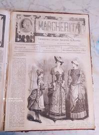 Vendo libro raccolta settimanale Margherita " Il giornale delle signore italiane " . Annata dicembre 1887 fino a dicembre 1888. Buone condizioni generali, con illustrazioni a colori e cartamodelli . Unico nel suo genere descrive la moda del suo tempo con illustrazioni e istruzioni. All' interno si possono leggere Novelle romanzi e poesie , pensieri e frasi del tempo , lettere al giornale e una rubrica dedicata al Corriere di Parigi. Oggetto raro da collezione.