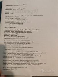 Vendo libro universitario "Organizzazione aziendale" di Richard L. Daft, terza edizione italiana, Apogeo Education.