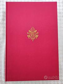 Rara edizione di pregio pubblicata da FMR Art’è nel 2006 in occasione degli 80 anni di Papa Benedetto XVI. Si tratta di un volume illustrato con 49 tavole a colori fuori testo su carta pregiata Gardamat da 150 g e stampa su carta Velin BFK Rives Blanc da 160 g con filigrana papale. Rilegatura in seta orient porpora con iscrizioni oro a caldo e ricamo dello stemma papale in filo d’oro, cofanetto protettivo e certificato di autenticità. Tiratura limitata a 2.950 copie numerate più 50 riservate alla Santa Sede, con numerazione individuale.