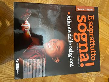 Libro religione scuole medie “e soprattutto sogna”. Totale 3 libri: libro principale (qualche sottolineatura su pochissime pagine, nessun esercizio compilato, quasi nuovo), libro “educare al bene comune” ( nuovo), libro atlante (nuovo)