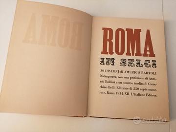 ROMA IN SELCI 30 DISEGNI DI AMERIGO BARTOLI NATINGUERRA CON PREFAZIONE DI ANTONIO BALDINI E UN SONETTO INEDITO DI GIOACCHINO BELLI ROMA L'ITALIANO EDITORE 1934 30 TAVOLE EDIZIONE ORIGINALE DI 250 COPIE NUMERATEE SEMPLARE N. 224 LA PRIMA RACCOLTA DEI DISEGNI MEZZA TELA EDITORIALE BEN Tenuto compreso spedizione euro 140 PAGAMENTI BONIFICO O CON post pay