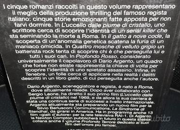 DA COLLEZIONE UN BOOK raccolta romanzo storie horror thriller di dario argento ( IL GATTO A 9 CODE, 4 MOSCHE DI VELLUTO GRIGIO, TENEBRE, ROSSO, ECC) COPERTINA CON ALCUNI SEGNI PIEGHETTE, COME FOTO. VOLUME ANNI 1994, FUORI CATALOGO