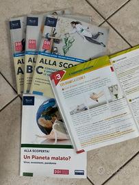 Libro scienze scuola media (TRIENNALE) vol. A-B-C-D + FASCICOLO "Un pianeta malato". Ottime condizioni, tutti rilegati con copertine Colibri trasparenti. Vendo a metà del prezzo di copertina (tot. 38,90 vendo a 19)